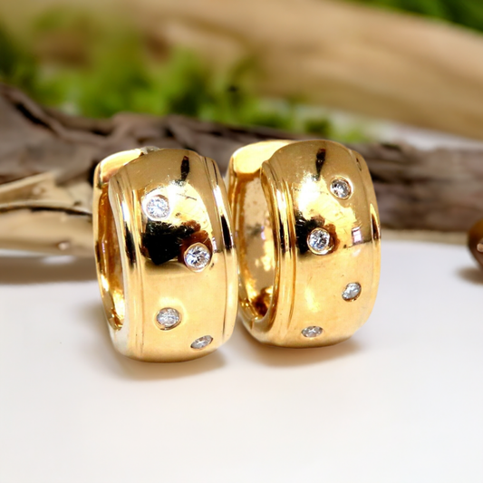 .06ct Natural Diamond Earrings 14kt Gold Semi Hoop