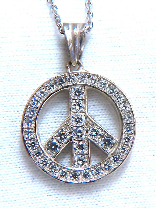 .80ct Bead Set Peace Charm natural Diamond Necklace 14kt