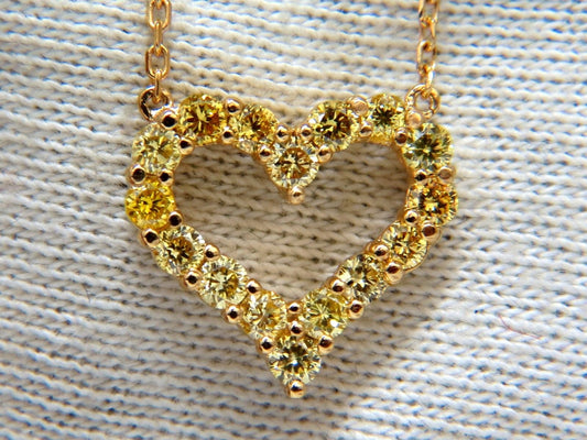 1.00ct Natural Fancy Yellow diamonds open heart necklace 14kt