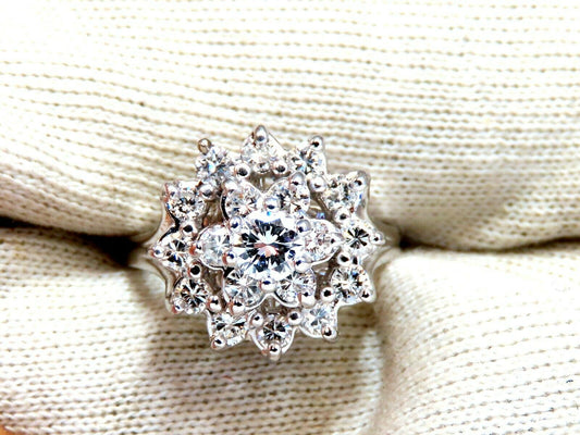 1.10ct. Natural Marquise Diamonds Cluster Ring 18kt Baguette Accents