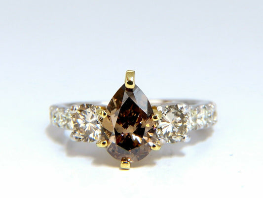 1.50ct Natural Fancy Brown & 1.30ct Diamonds Mod Three Ring 14 Karat