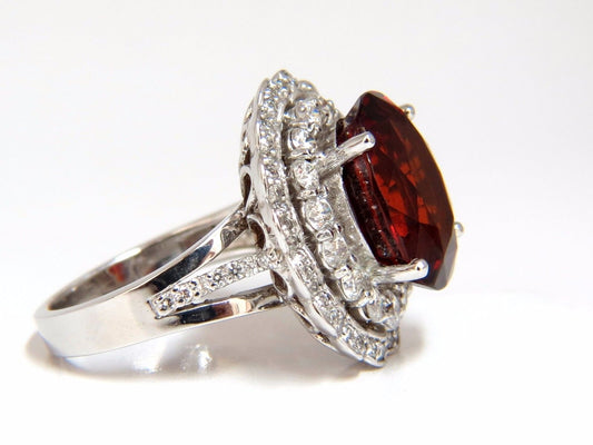 10.90ct Natural Hessonite Garnet Diamonds Ring 14kt Double Halo