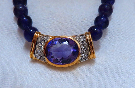 10.75ct Natural Heart Blue Sapphire Diamonds Tahitian Pearls Necklace 18 karat