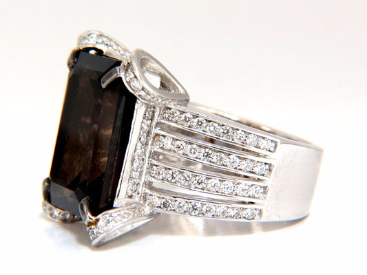 12.00ct Natural Prime Smokey Topaz Diamonds Ring 14kt