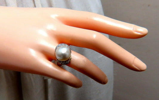 12.7mm Natural South Seas Pearl Diamonds Rings 18kt