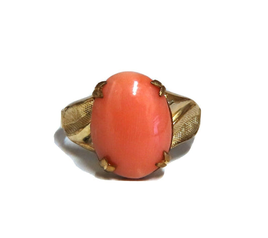 12x10mm natural 4ct pink Coral ring 10kt