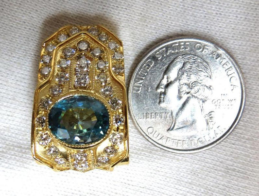 13.14ct natural vivid blue zircon diamonds clip earrings 18kt
