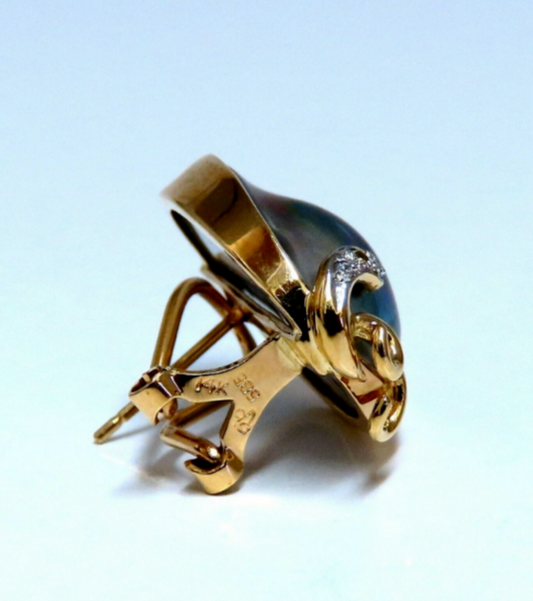 .30 Carat Natural Diamonds Black Blister Pearl Clip Earrings 14 Karat