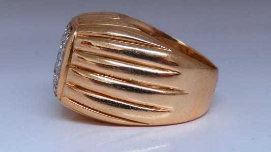18 Karat 1 Carat Diamond Dome Ring Mod Deco Detail