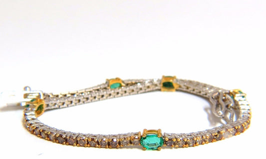 3.00ct green natural emeralds fancy color diamonds tennis bracelet 14k
