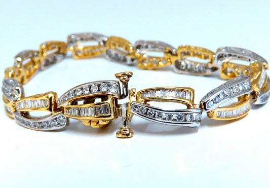3.54ct Natural Baguette & Round Diamonds Channel Bracelet 14kt Gold Open Deco