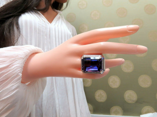 37.23Ct Natural Amethyst Diamond Ring 18 Karat Cocktail Cluster