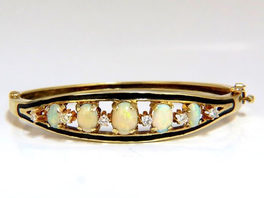 6.60ct natural Australian opals diamond bangle cocktail bracelet 14kt Vintage