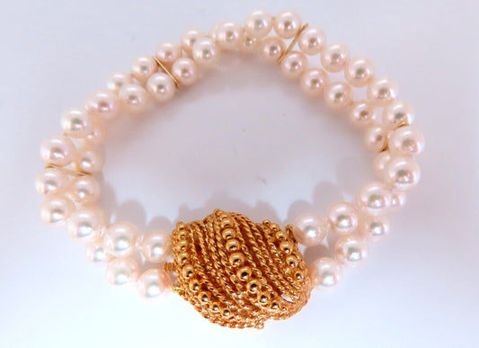 6.75mm Akoya pearls pearls double stranded bracelet 14kt Shell Twist Clasp