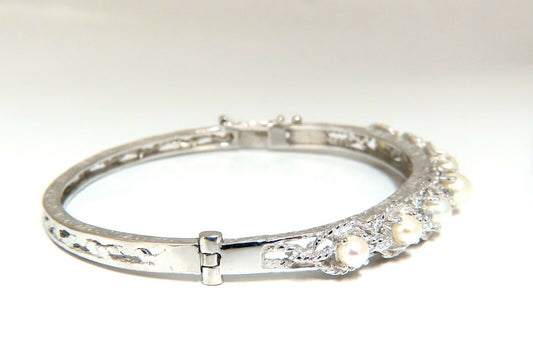 6mm Natural Akoya Pearls Bangle Bracelet 14 Karat Rope Twist