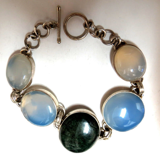 925 Sterling Silver Jasper Chalcedony Moonstone Silver Bracelet