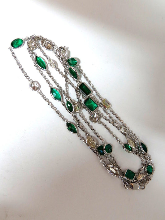 9ct natural emerald & diamond station link yard necklace 14kt / Double Wrap