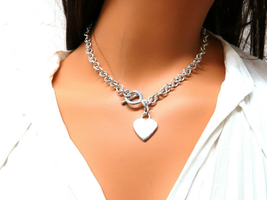 925 Sterling Silver Toggle Heart Link Necklace 12612