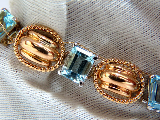 Aquamarine Bracelet Vintage 16.40ct (7) emerald cuts 18kt chain link