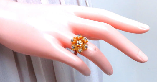 Daisy Cluster Mother of Pearl Ring .10ct Natural Diamonds 18k gold