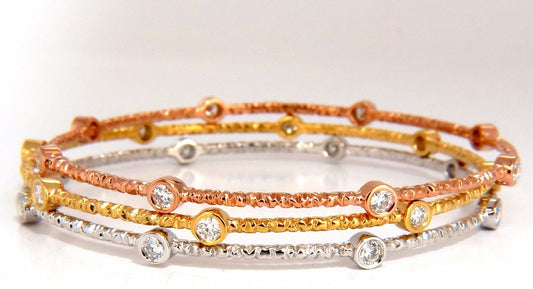 Diamond Bangle bracelets stackable hammer chisel finish 2.30ct 14kt 8 inch wrist