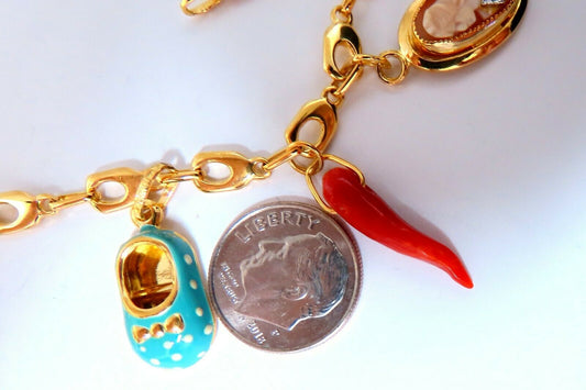 Eight Charms Link Bracelet 14kt gold 7 inch 43gm