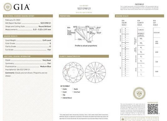 GIA Certified .49ct Natural Round Diamond solitaire ring E/I2