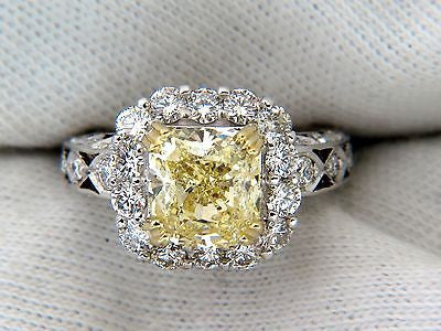 GIA 5.52CT CUSHION NATURAL FANCY YELLOW DIAMOND CLUSTER HALO RING VVS1