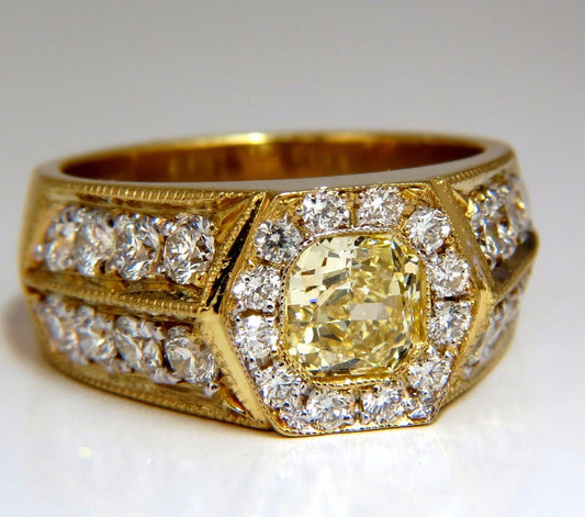 GIA Certified 2.95ct natural Fancy Yellow diamonds mens ring 18kt Hexagon Deck
