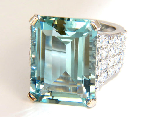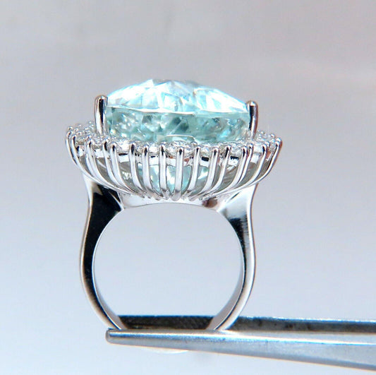 GIA Certified 28.26ct Natural Aquamarine diamonds ring Vivid 14kt