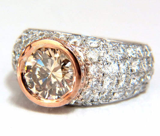 GIA Certified 3.08ct. Fancy light brown round cut diamond ring 14kt