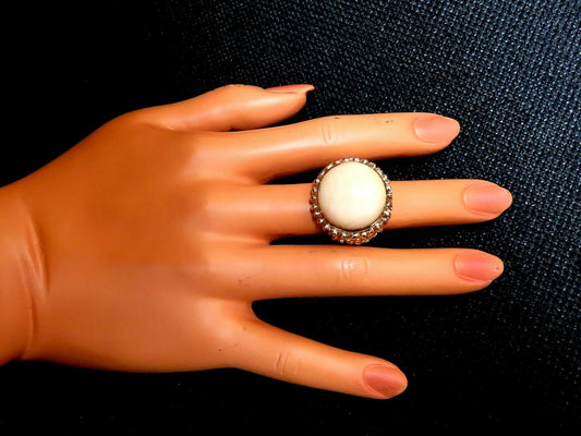 GIA Certified 8.04ct natural cabochon opal diamonds cocktail ring 14kt