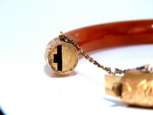 GIA Certified Natural IOrange Brwon Jade Bangle Bracelet 14kt