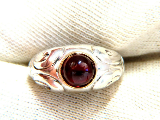 Sterling silver cabochon natural garnet solitaire ring