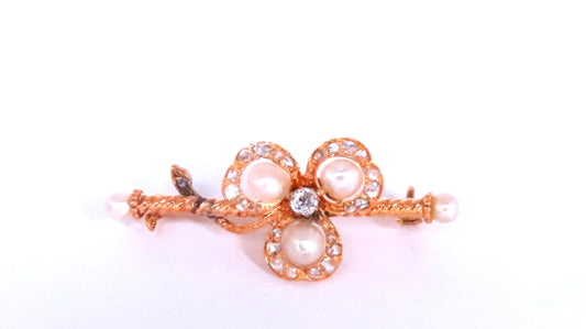 Jacobean Revival Barley Twist Brooch Pin 14kt clover 12538