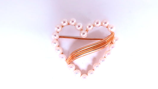 3mm Cultured Pearl handmade Heart Pin 14kt Gold 12540