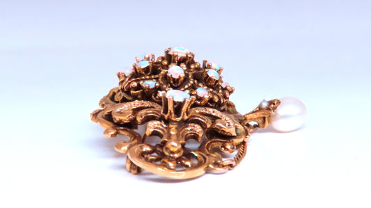 Vintage Edwardian Natural Opal Pin 14kt Pendant 12368