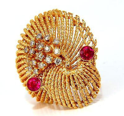 14KT VINTAGE 1.25CT DIAMOND 3D MOLLUSK SEA SHELL BROOCH PIN BARLEY TWIST