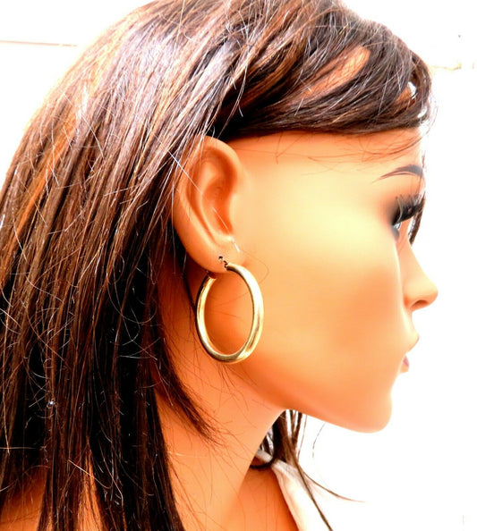 14Kt Gold Hoop Earrings Tubular Plain 1.30 inch diameter