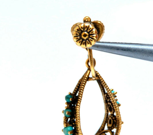 22kt Gold Diamonds Dangle Floral Patina Earrings