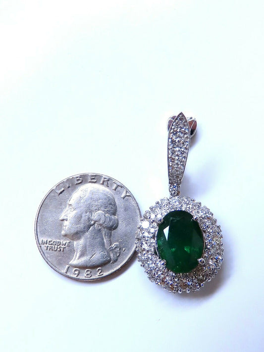 8.35ct Natural Oval Emeralds Diamond Dangle Earrings 18kt Halo Cluster