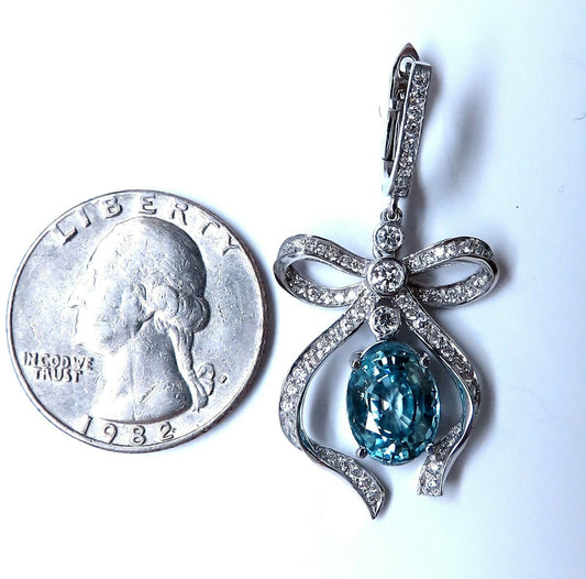 9.95ct natural blue zircon and diamonds dangle earrings 14kt Ribbon Love