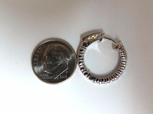 1.00ct Natural round brilliant in/out diamond hoop earrings 14kt g/vs .78 inch