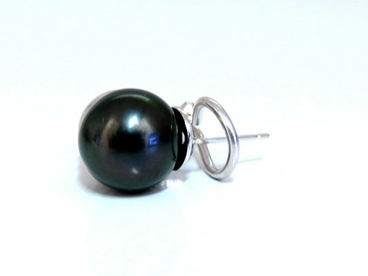 11mm natural tahitian pearl & .50ct diamonds raised cap earrings 14kt