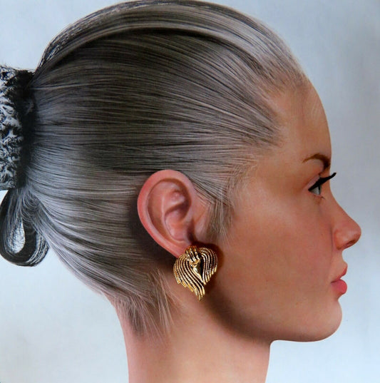 14kt Gold Textured Flaming Clip Earrings