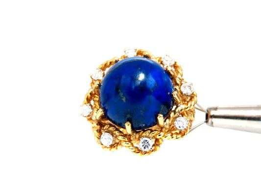 GIA Certified Natural Lapis Diamond Clip Earrings & Ring 18kt