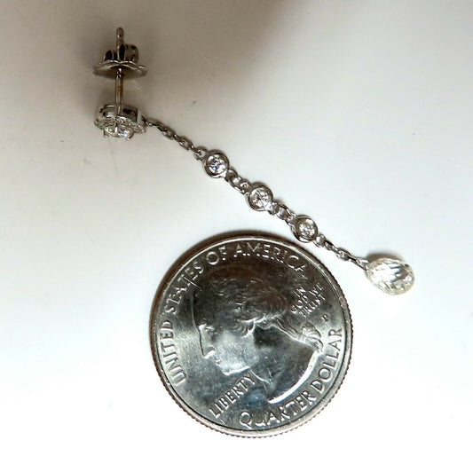 2.20ct Natural Briolette Diamonds Dangle Station Yard Earrings 14 Karat