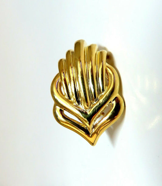 Retro Emblem Shell Statement Clip Gold Earrings 18 Karat Omega
