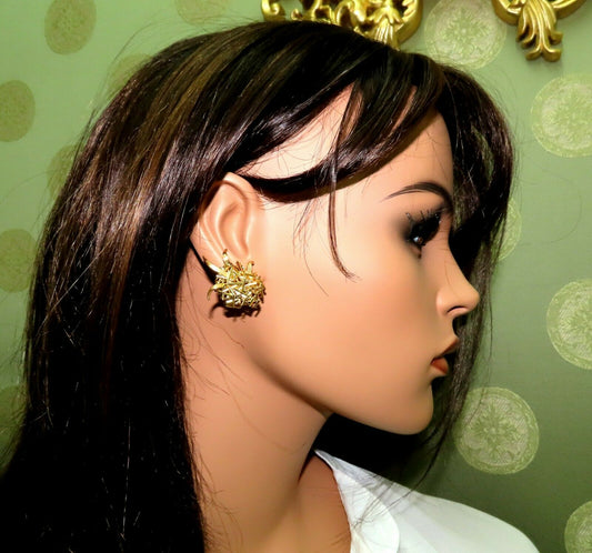 1.52ct Natural Fancy Yellow Diamonds Floral Dome Cluster Clip Earrings 14 Karat