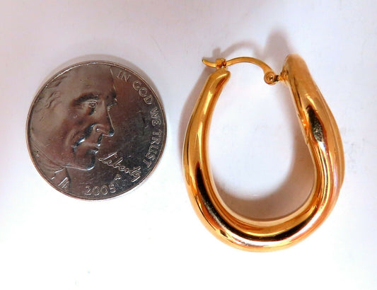 Elongated Flaming Hoop Gold Earrings 14 Karat